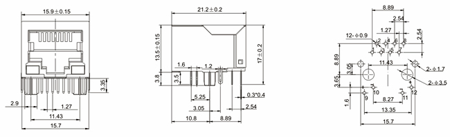 10/100Base-TX surface mount RJ45 single 1X1 Tab-UP/DOWN with or without LEDs Integrated Magnetics connector, designed to support applications such as:set Tox and network cards (NIC)