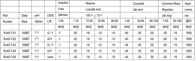 10/100Base-TX surface mount RJ45 single 1X1 Tab-UP/DOWN with or without LEDs Integrated Magnetics connector, designed to support applications such as:set Tox and network cards (NIC)