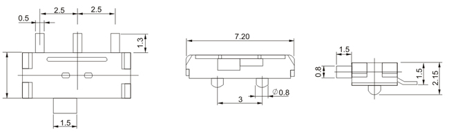 额定电压,电流:DC 12V 0.1A 30V 0.3A DC 50V 0.3A 0.5A DC 60V 0.5A接触电阻:30m ohm max.绝缘电阻:100M ohm at 500v DC耐压:AC 500V FOR 1 min.动作寿命:50,000 cycles(Unloading at 15-18cycles per minute)