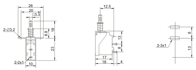 环境条件:≤-20~+85oC 95%(40oC)接触电阻:≤0.03Ω绝缘电阻:≥100MΩ安装孔间距:20、25、32、35耐压:AC 1500V(端一端) AC3500V(端一支架)动作力:2-8N寿命:10000次