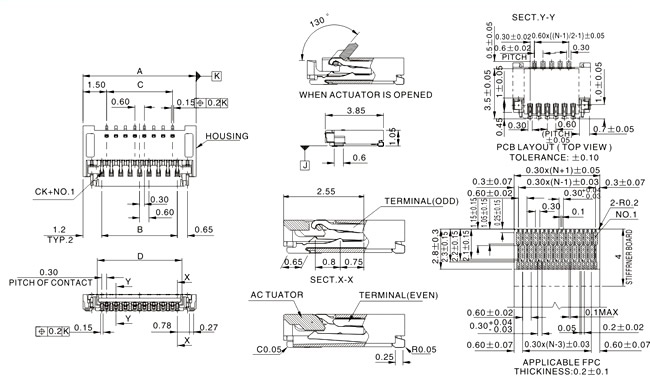 FPC0.3 C型连接器翻盖下接贴片