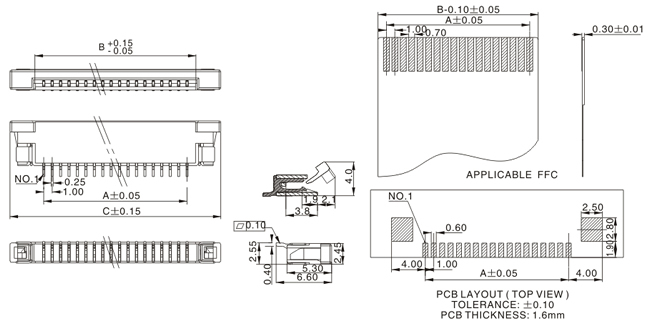 FPC1.0 D型连接器卧式下接贴片