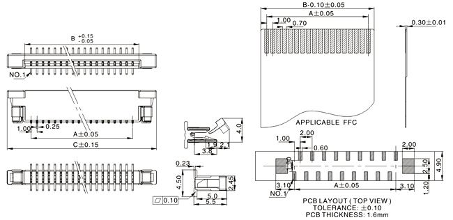 FPC1.0 F型连接器立式一字贴片